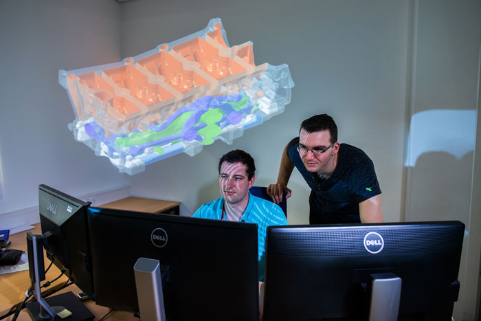 Um die Gussform für Ihr Bauteil funktionsgerecht zu konstruieren, arbeiten wir in unserer CAD-Abteilung mit der neuesten Software, führen umfangreiche Simulationsprozesse durch und prüfen Ihre Konstruktionsdaten mit Blick auf die bei uns verwendeten Guss-Technologien.